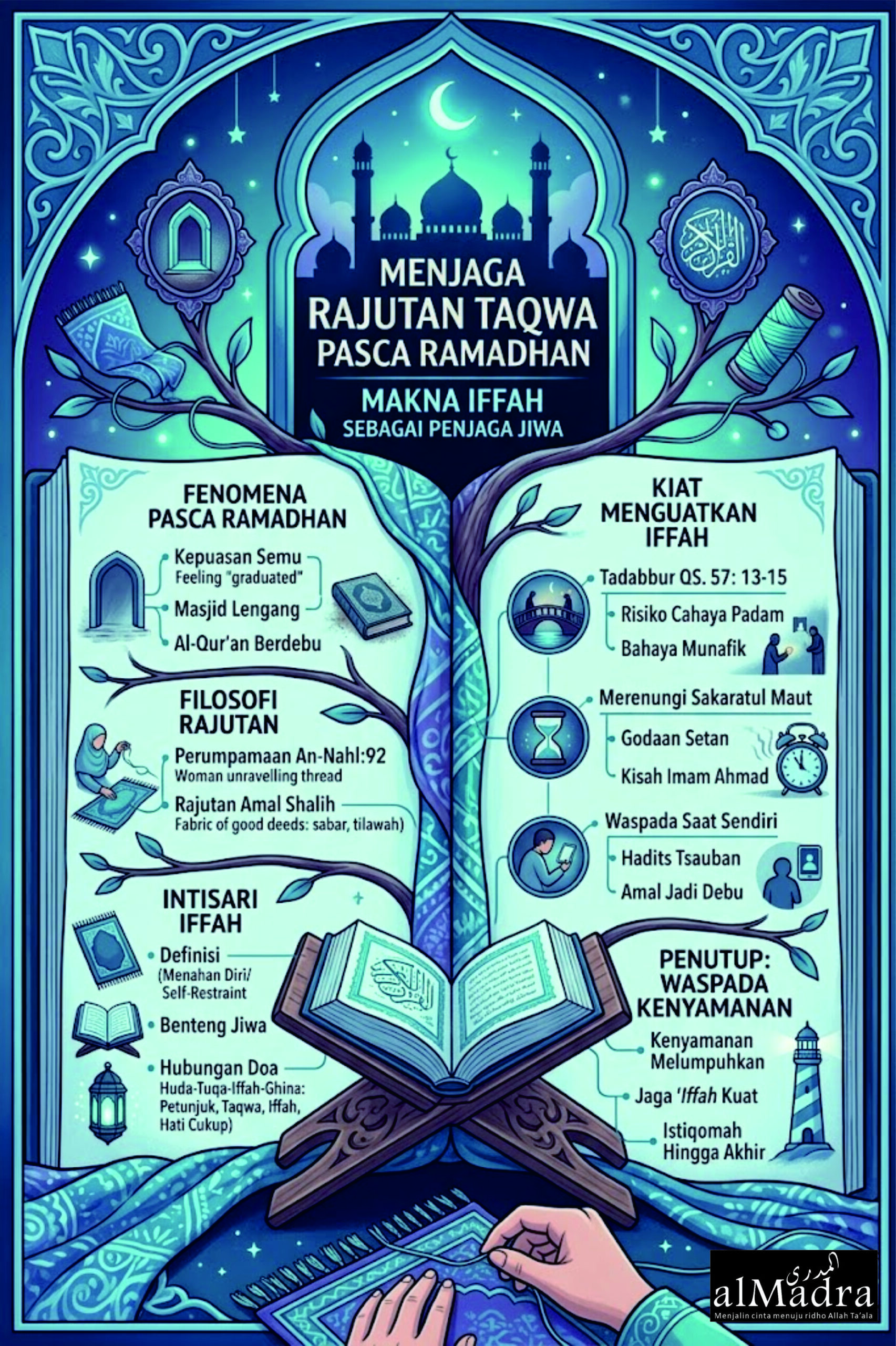 Tanpa ‘iffah, seorang hamba akan mudah terseret arus lingkungan dan fitnah. ‘Iffah adalah benteng. Ia bukan sekadar menahan diri dari yang haram, tapi juga menahan diri dari kemalasan dan rasa cukup atas amal yang sedikit. Tanpa penjagaan diri yang ketat, kemuliaan yang kita raih di bulan suci Ramadhan akan luntur seketika tersapu badai fitnah syahwat dunia.