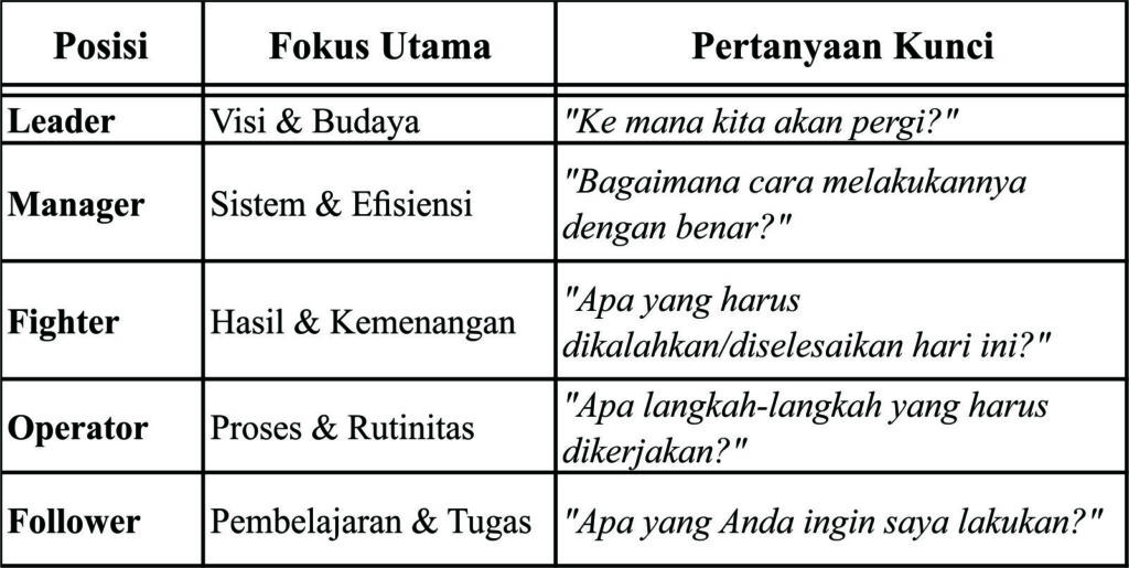 • Cara Berpikir: Strategis dan antisipatif. Mereka menciptakan sistem dan budaya, bukan hanya mengikuti arus.